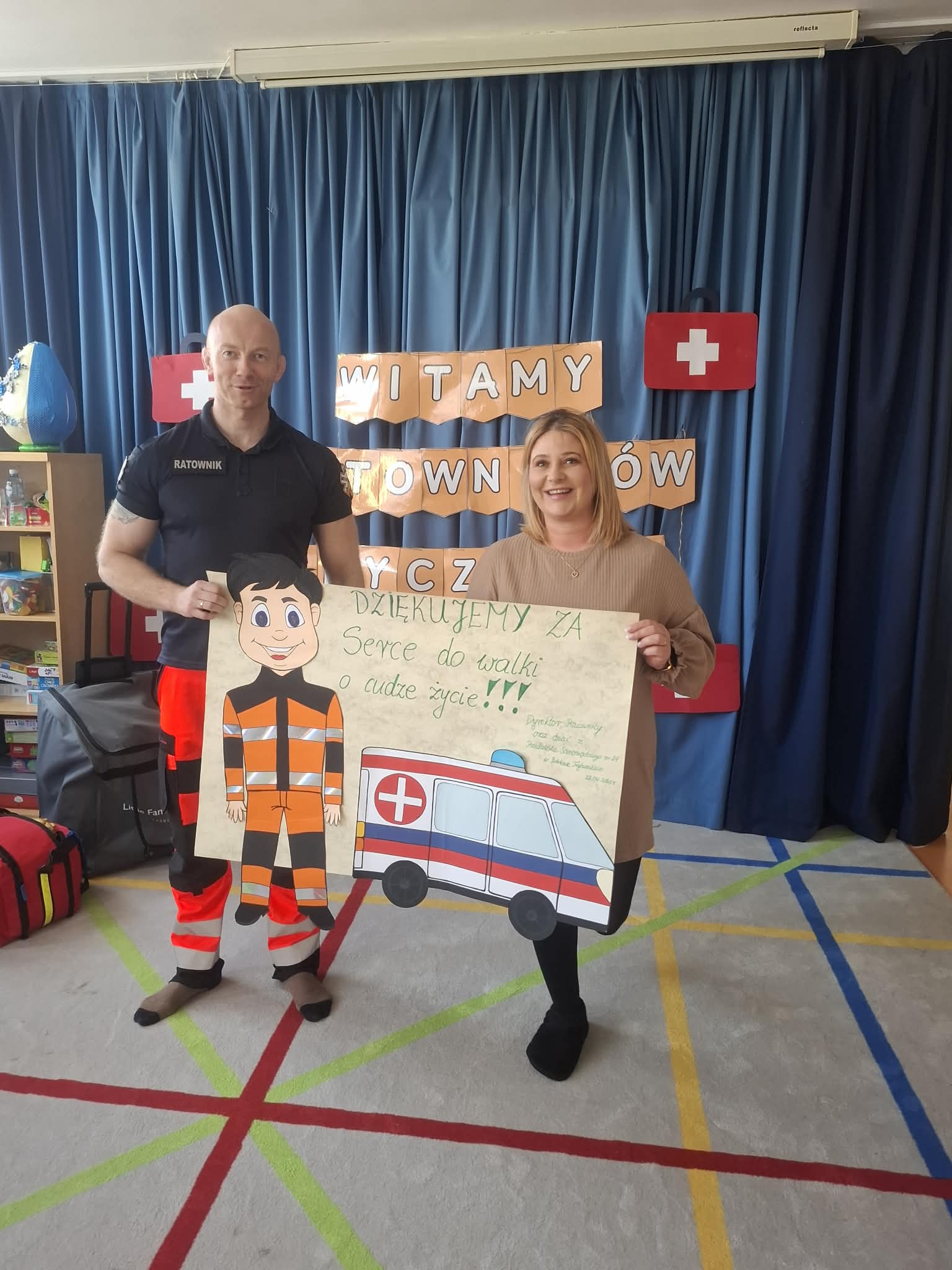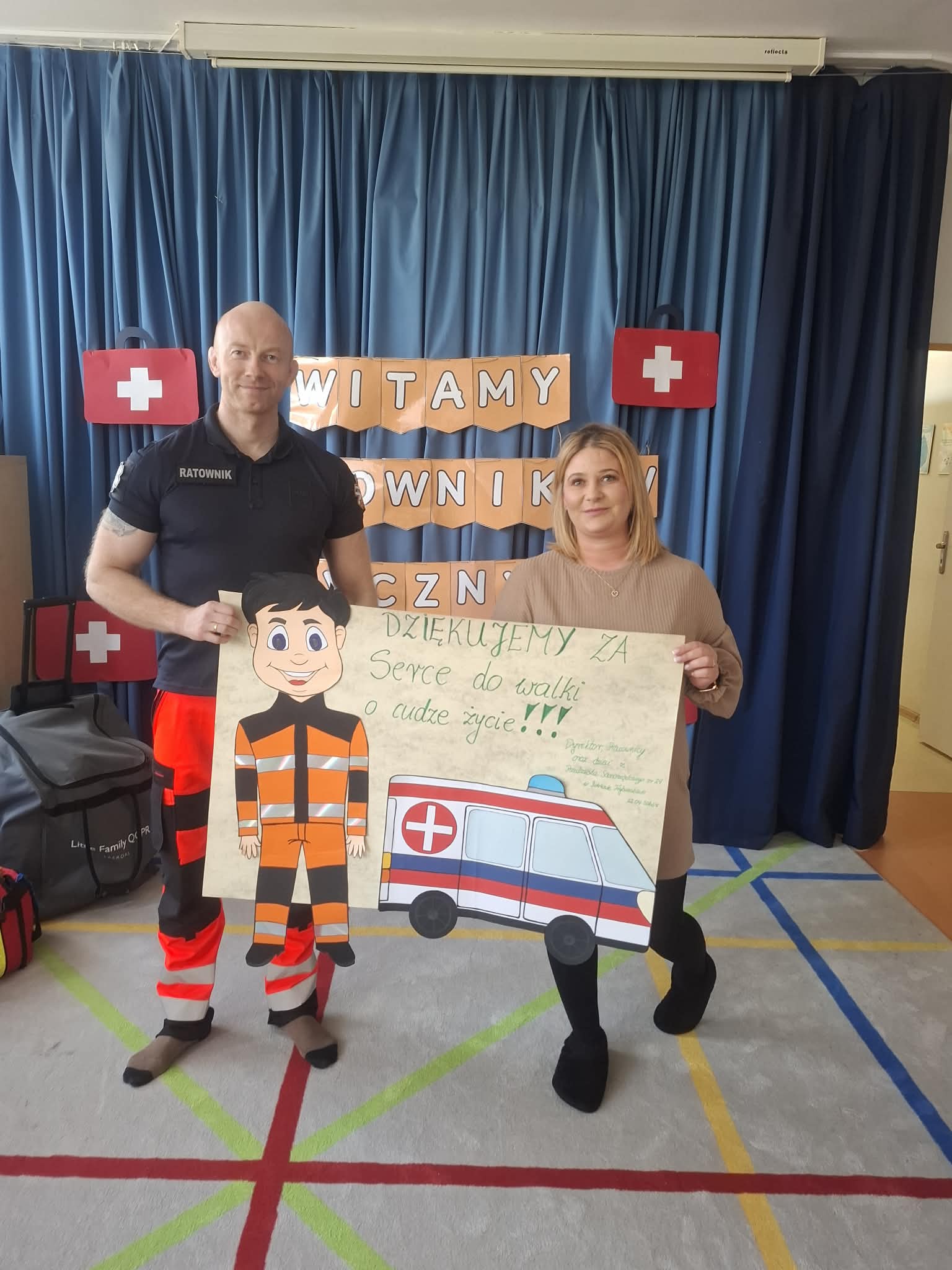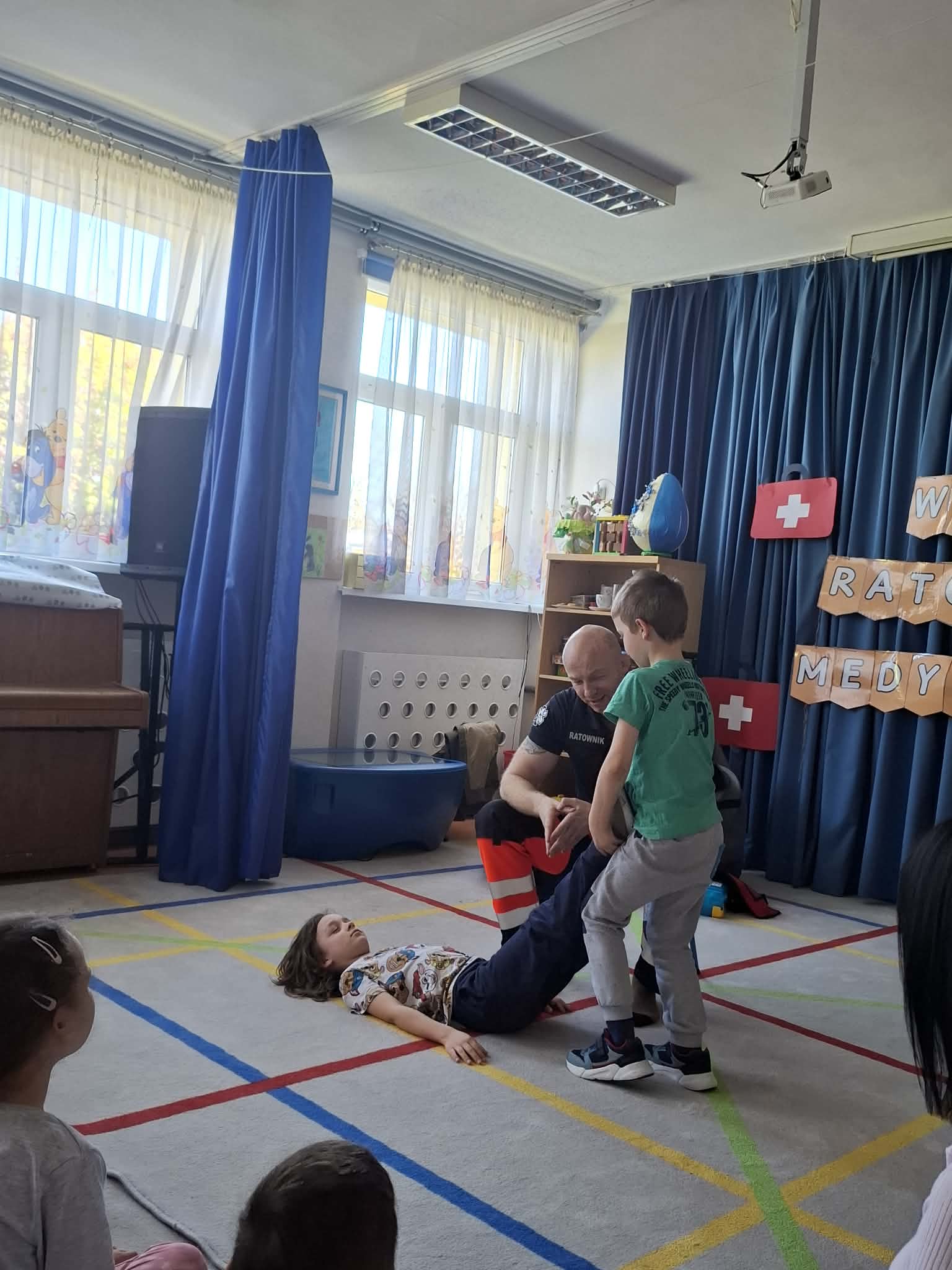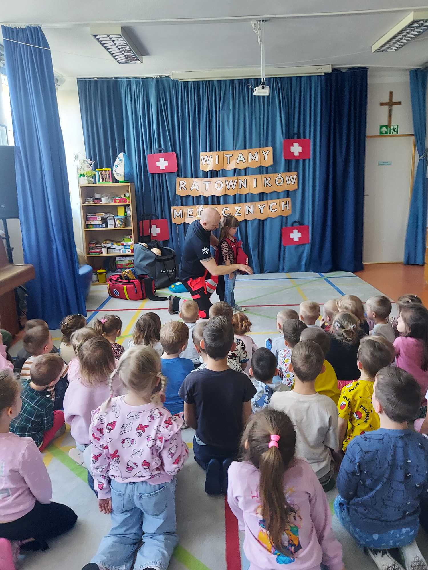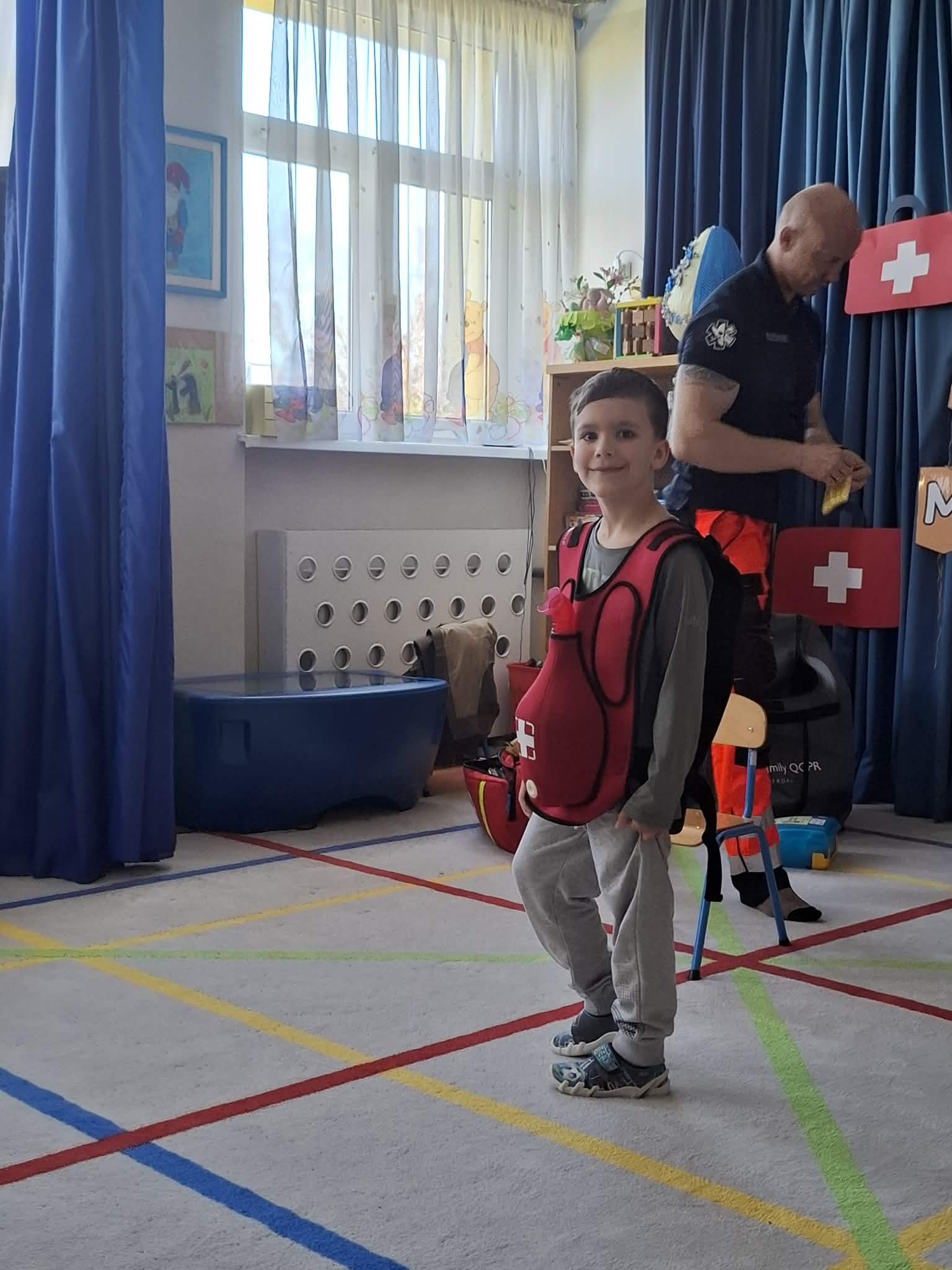 W naszym przedszkolu w dniu 23.04.2026 roku odbyło się wyjątkowe spotkanie z ratownikiem medycznym, który przybliżył dzieciom zasady udzielania pierwszej pomocy. Przedszkolaki dowiedziały się, jak zachować się w sytuacji zagrożenia oraz w jaki sposób wezwać pomoc. Gość zaprezentował podstawowe czynności ratunkowe, a dzieci mogły aktywnie uczestniczyć w pokazie. Największym zainteresowaniem cieszyła się możliwość obejrzenia sprzętu medycznego oraz ćwiczenia na fantomie. Spotkanie było nie tylko bardzo ciekawe, ale przede wszystkim pouczające i dostosowane do wieku dzieci. Dzięki tej wizycie przedszkolaki zdobyły cenną wiedzę, która może pomóc w sytuacjach zagrożenia zdrowia lub życia. To była niezwykle wartościowa lekcja bezpieczeństwa.
