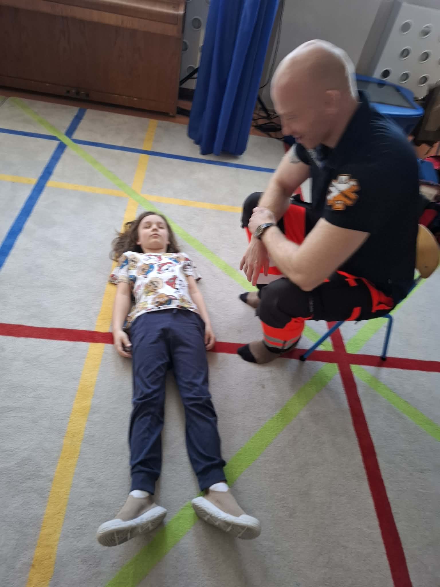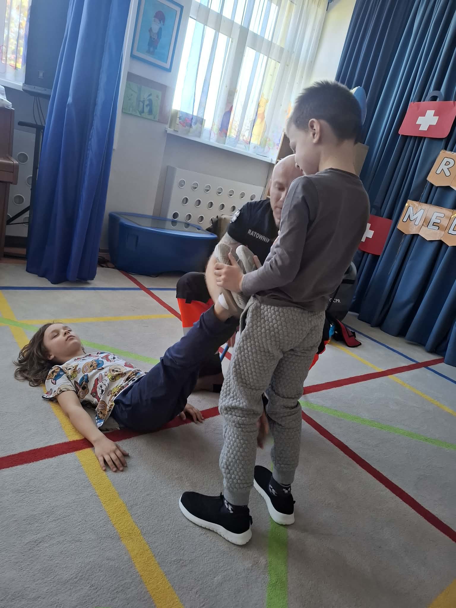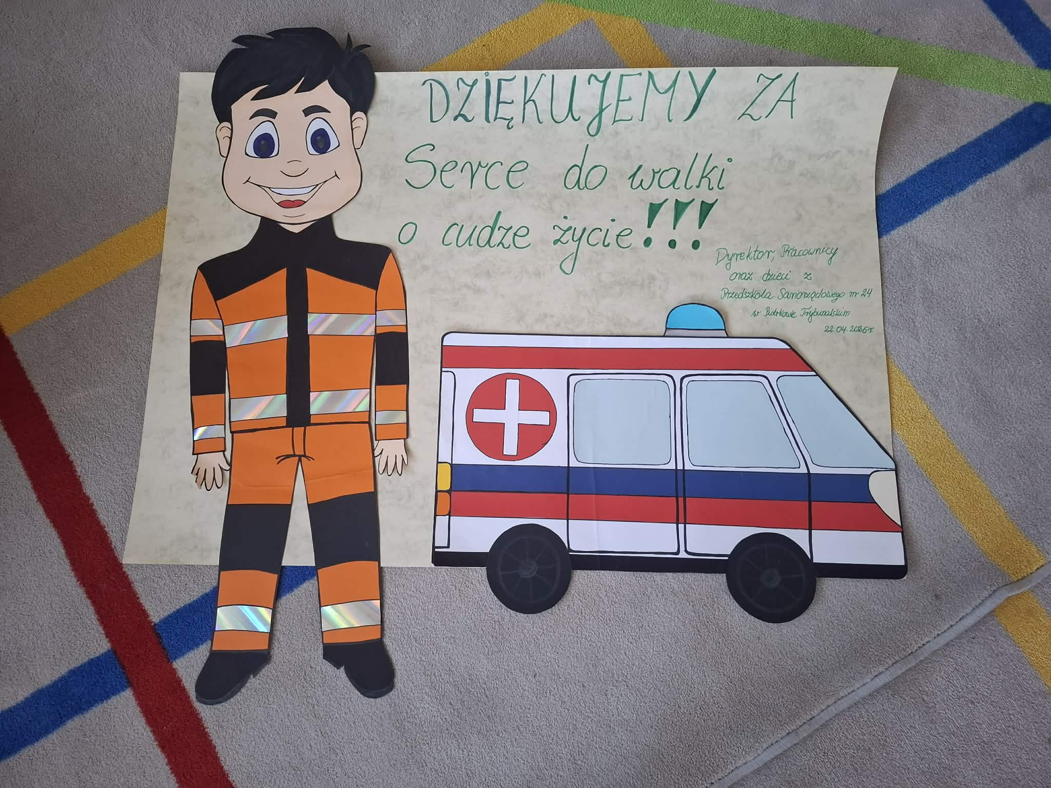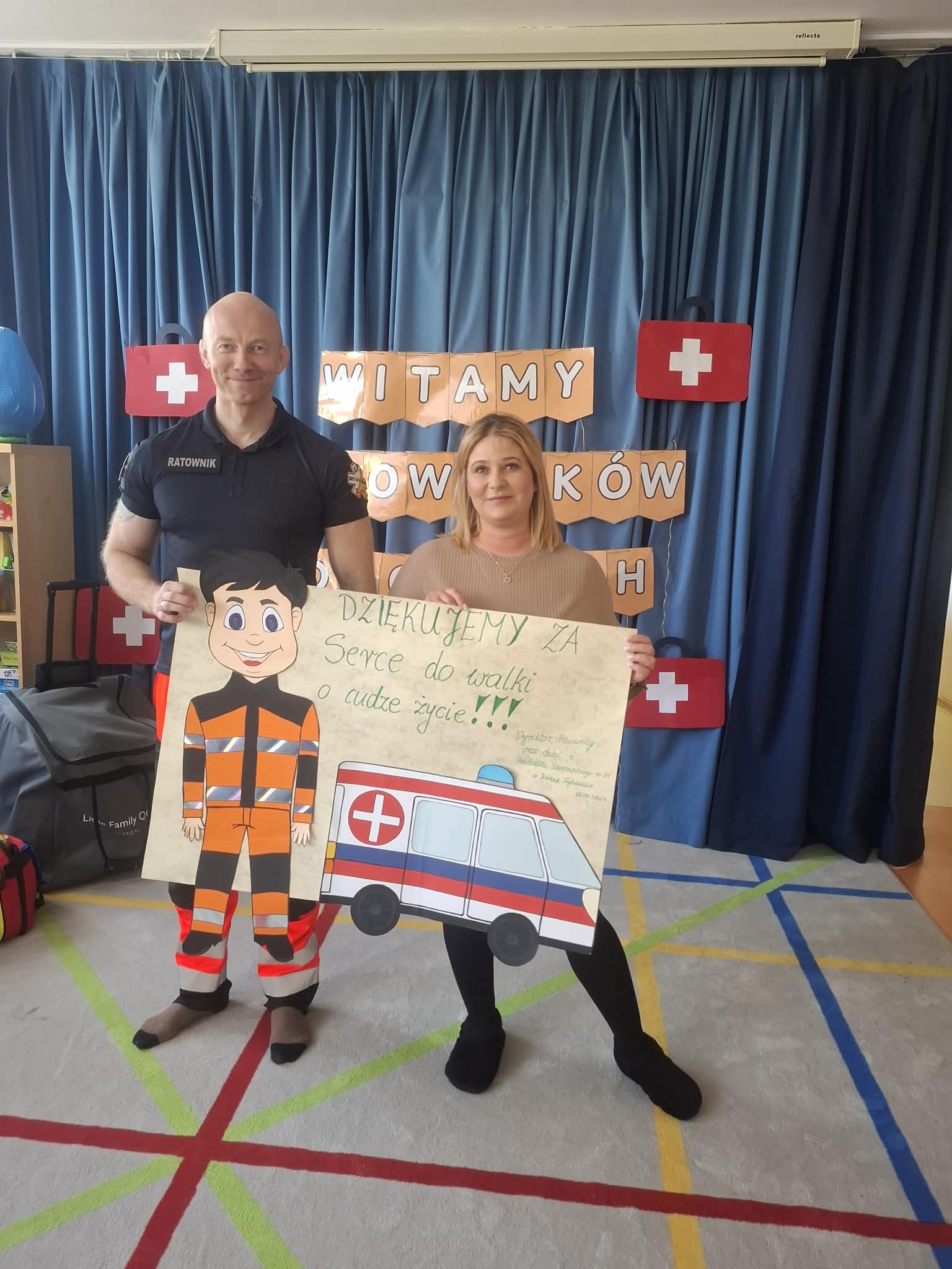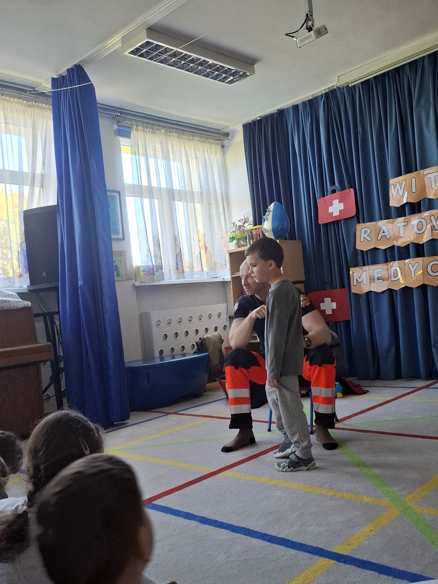W naszym przedszkolu w dniu 23.04.2026 roku odbyło się wyjątkowe spotkanie z ratownikiem medycznym, który przybliżył dzieciom zasady udzielania pierwszej pomocy. Przedszkolaki dowiedziały się, jak zachować się w sytuacji zagrożenia oraz w jaki sposób wezwać pomoc. Gość zaprezentował podstawowe czynności ratunkowe, a dzieci mogły aktywnie uczestniczyć w pokazie. Największym zainteresowaniem cieszyła się możliwość obejrzenia sprzętu medycznego oraz ćwiczenia na fantomie. Spotkanie było nie tylko bardzo ciekawe, ale przede wszystkim pouczające i dostosowane do wieku dzieci. Dzięki tej wizycie przedszkolaki zdobyły cenną wiedzę, która może pomóc w sytuacjach zagrożenia zdrowia lub życia. To była niezwykle wartościowa lekcja bezpieczeństwa.