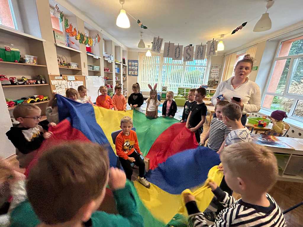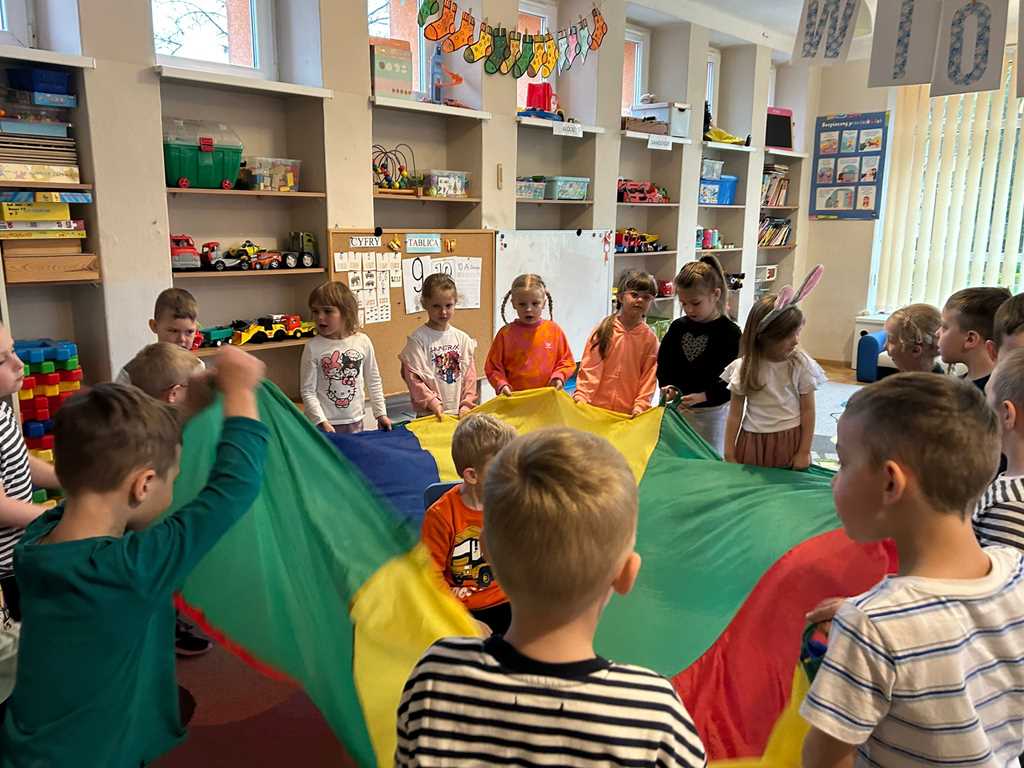 - Gimnastyka z wykorzystaniem chusty animacyjnej