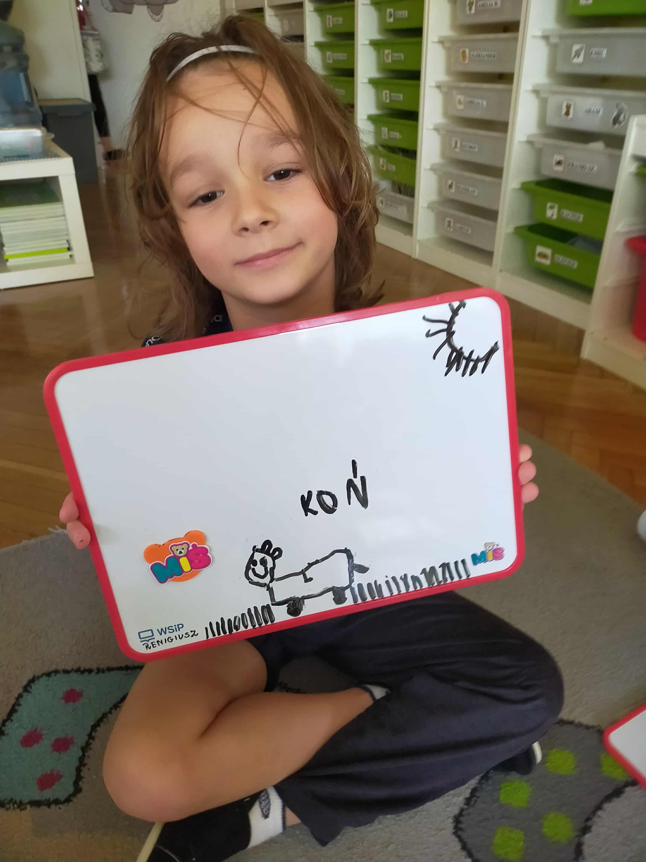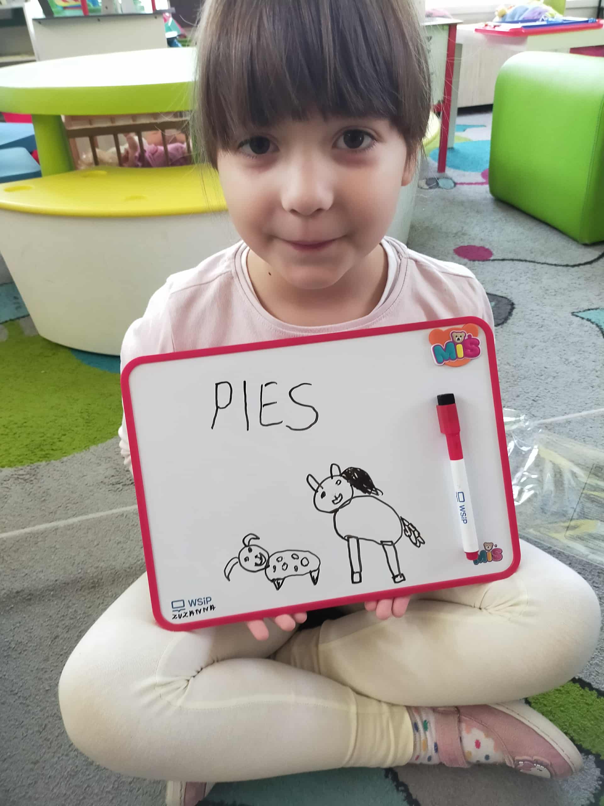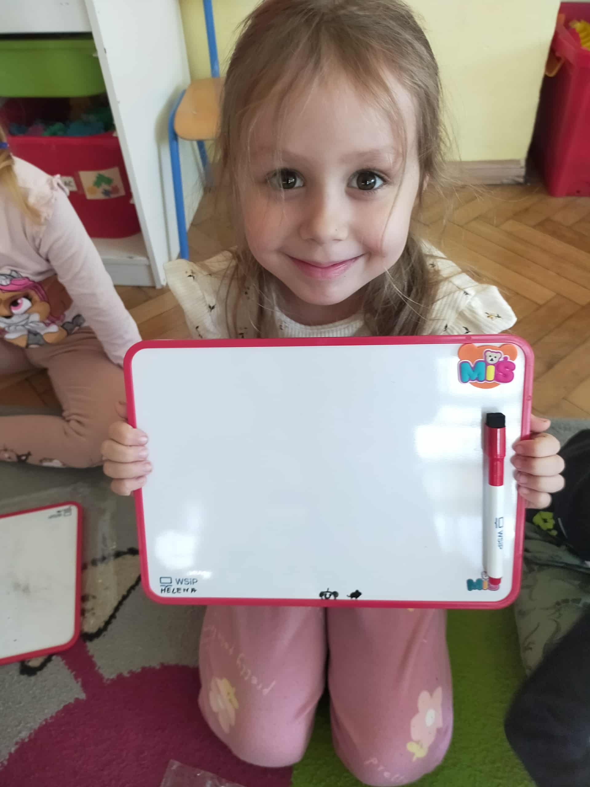 Dzieci z grupy "Zajączki" z zaangażowaniem pracowały na tablicach magnetycznych, rozwijając swoją wiedzę na temat zwierząt. Podczas zajęć rozpoznawały różne gatunki, omawiały ich cechy oraz środowisko życia. Następnie samodzielnie rysowały zwierzęta na tablicach, ćwicząc przy tym spostrzegawczość, koordynację wzrokowo-ruchową i kreatywność. Zajęcia połączyły naukę z zabawą, pozwalając dzieciom w atrakcyjny sposób utrwalać nowe informacje o świecie przyrody.
