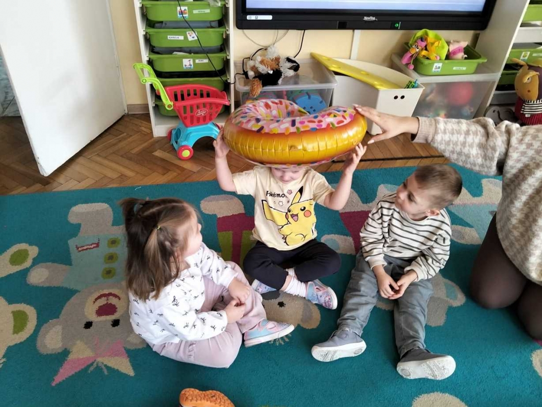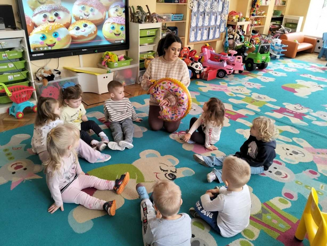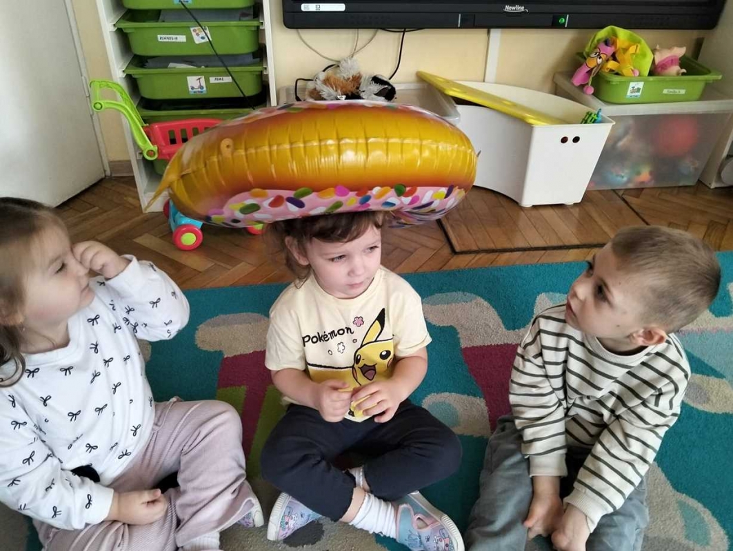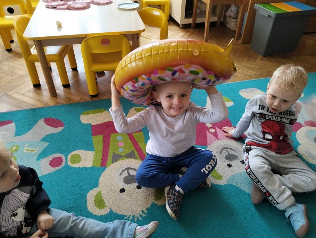 Na dzieci czekała zabawa z balonami w kształcie pączków, która wywołała mnóstwo uśmiechu i pozytywnych emocji. Maluchy obejrzały również prezentację multimedialną o tradycji Tłustego Czwartku, dzięki której dowiedziały się, skąd wzięło się to słodkie święto. Miały okazję również zdegustować domowych pączków. Na zakończenie dzieci wykonały prace plastyczne - własne, kreatywne pączki, które wyglądały naprawdę apetycznie!