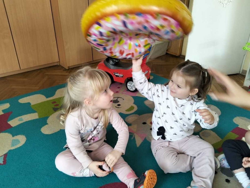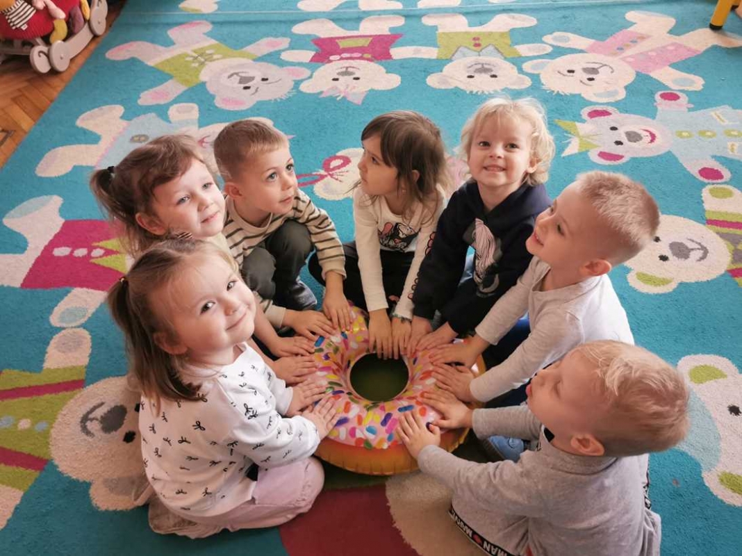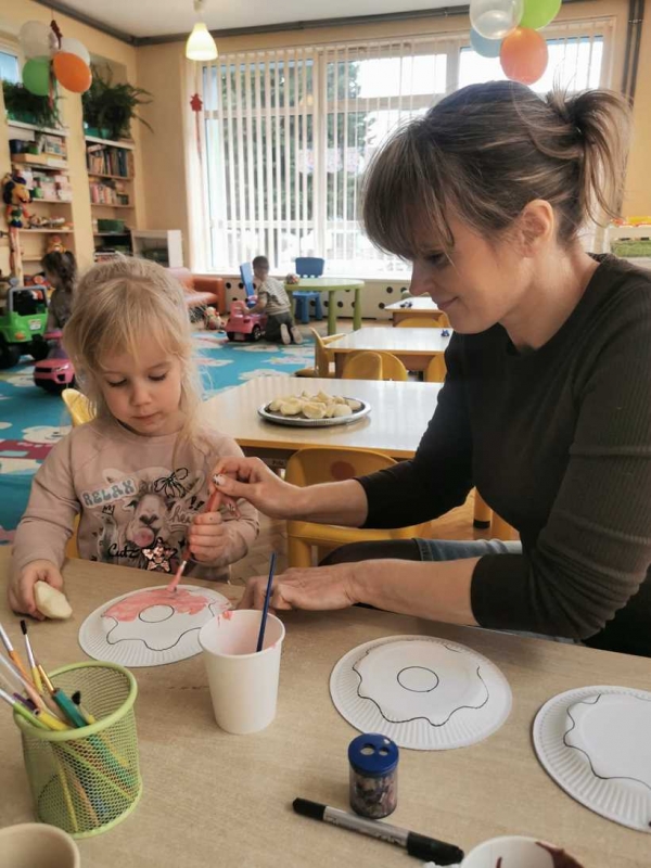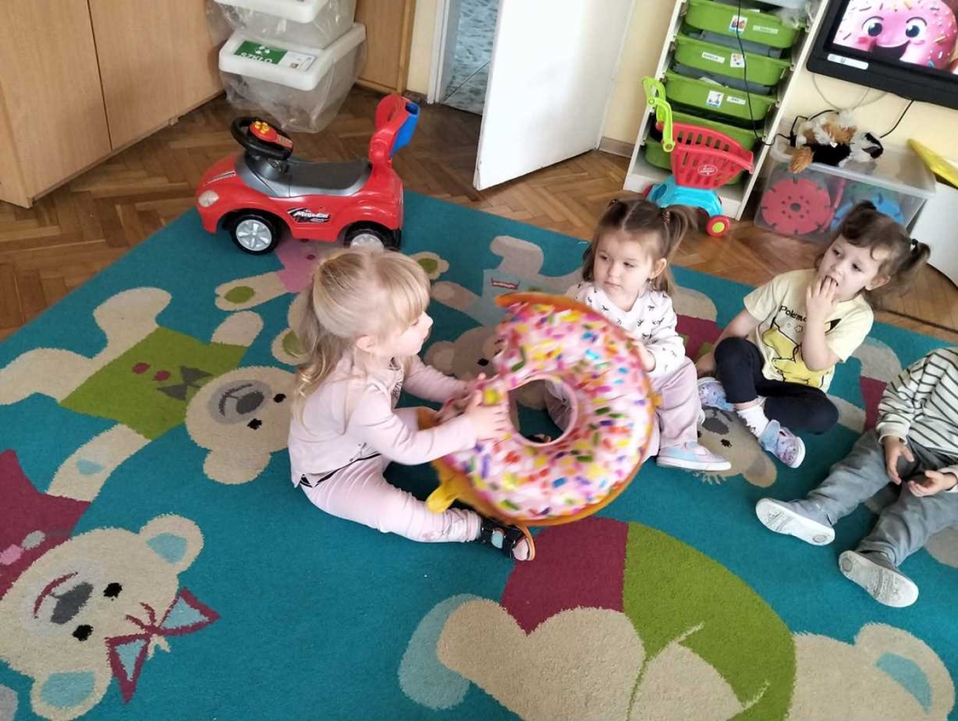Na dzieci czekała zabawa z balonami w kształcie pączków, która wywołała mnóstwo uśmiechu i pozytywnych emocji. Maluchy obejrzały również prezentację multimedialną o tradycji Tłustego Czwartku, dzięki której dowiedziały się, skąd wzięło się to słodkie święto. Miały okazję również zdegustować domowych pączków. Na zakończenie dzieci wykonały prace plastyczne - własne, kreatywne pączki, które wyglądały naprawdę apetycznie!