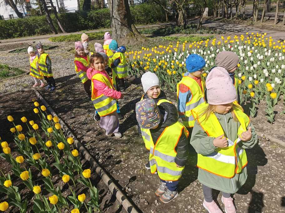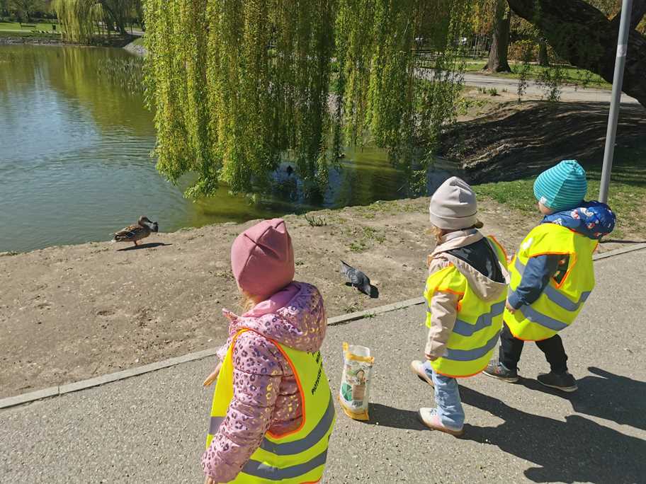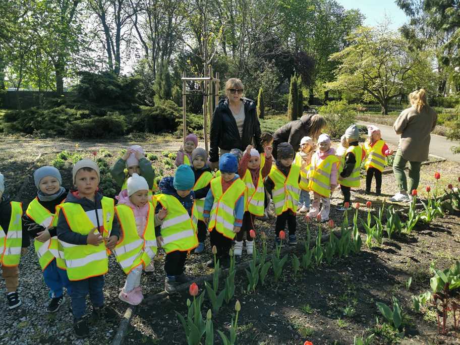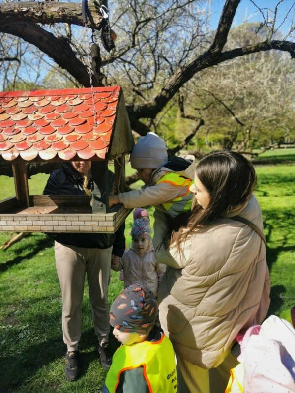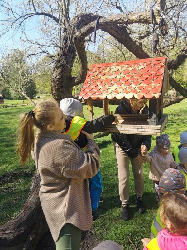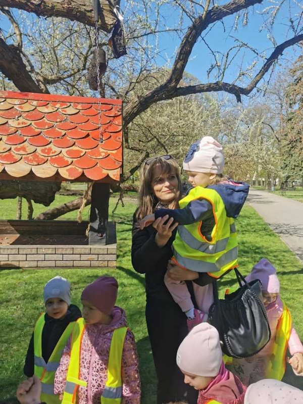 Podczas wycieczki odwiedziły również ogród botaniczny, gdzie mogły podziwiać różnorodność kwiatów. Dzieci z ogromnym zainteresowaniem obserwowały zmnieniające się oznaki wiosny, wsłuchiwały się w śpiew ptaków oraz uczyły się rozpoznawać ich głosy. Nie zabrakło także chwili na dokarmianie ptaków, co sprawiło maluchom wiele radości i było doskonałą okazją do rozmowy o trosce o zwierzęta. Spacer był pełen uśmiechu, ruchu i nowych doświadczeń. Dzieci były zachwycone.