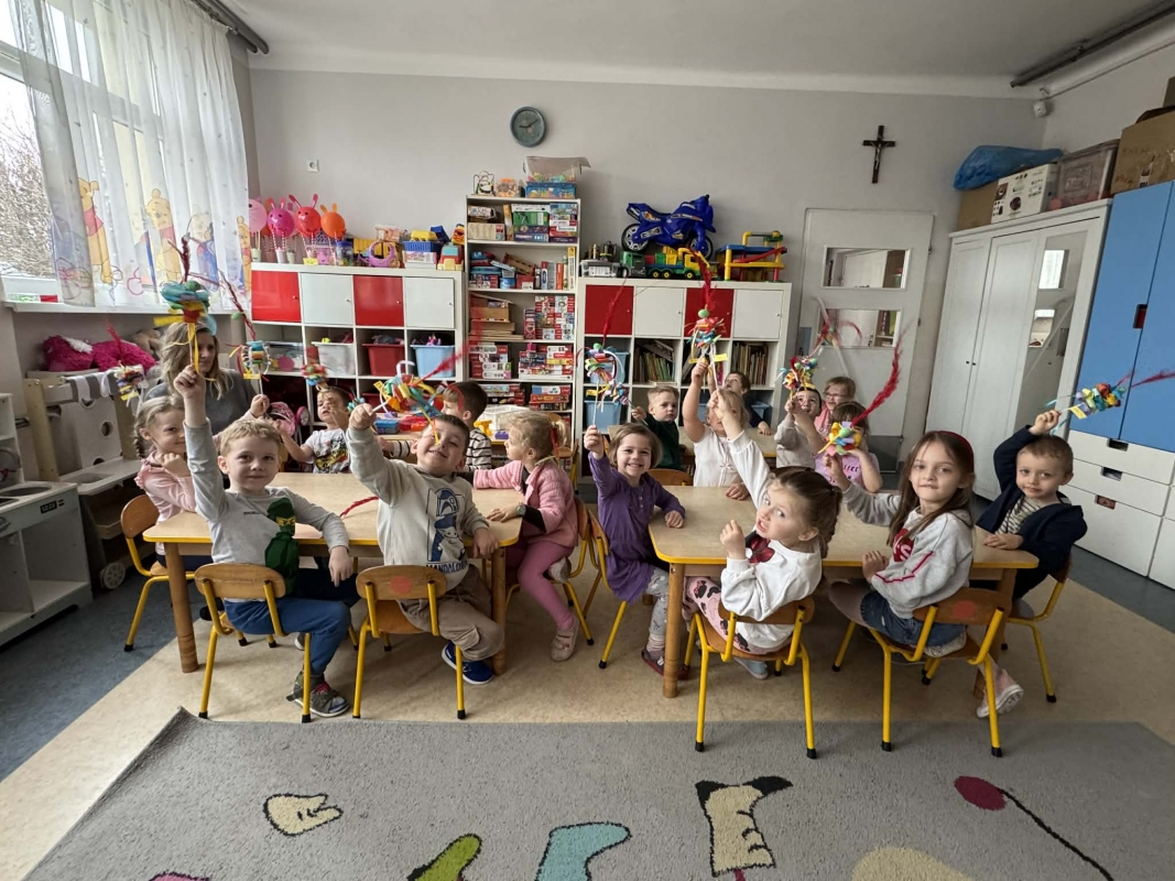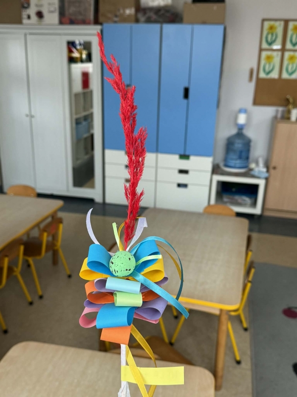 Dzieci wykonały z papieru kolorowe palemki wielkanocne, rozwijając swoją kreatywność i zdolności manualne. Praca sprawiła im wiele radości, a przy okazji pozwoliła poznać piękną tradycję związaną ze Świętami Wielkanocnymi.