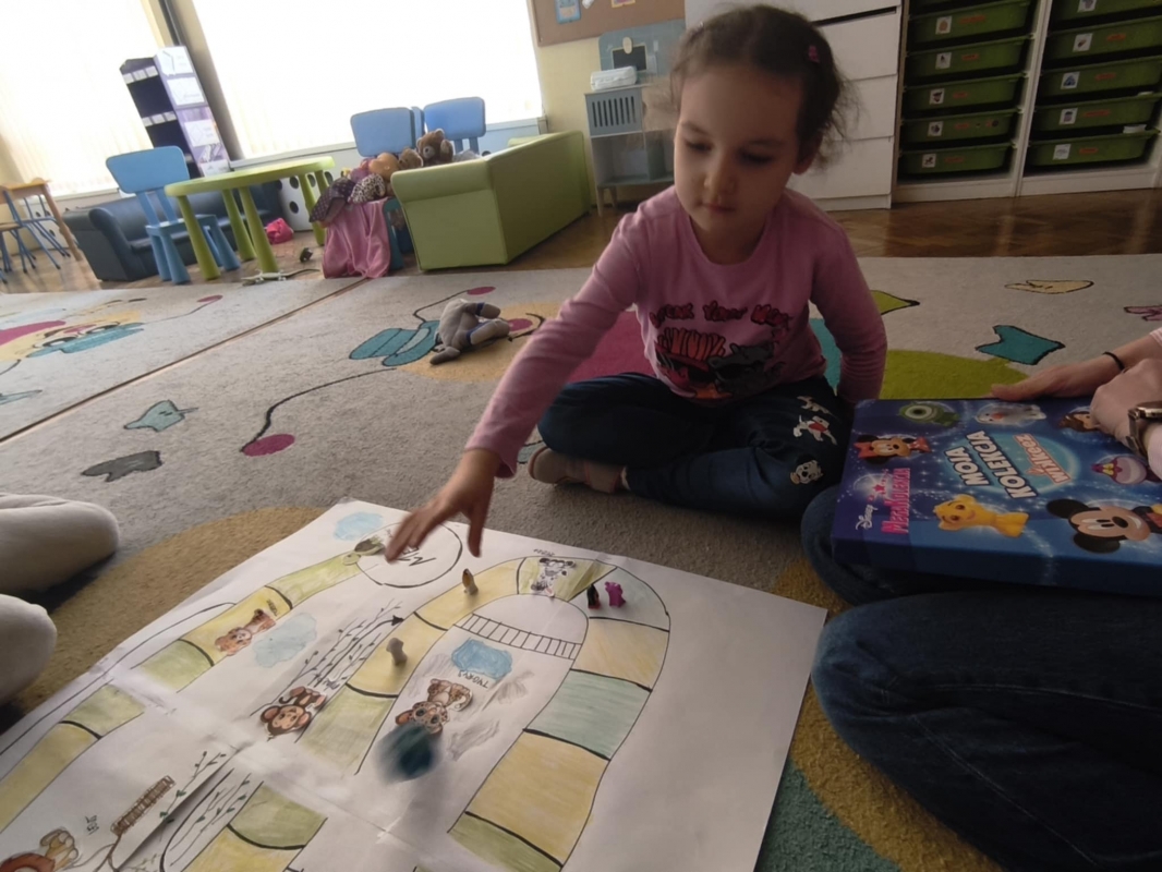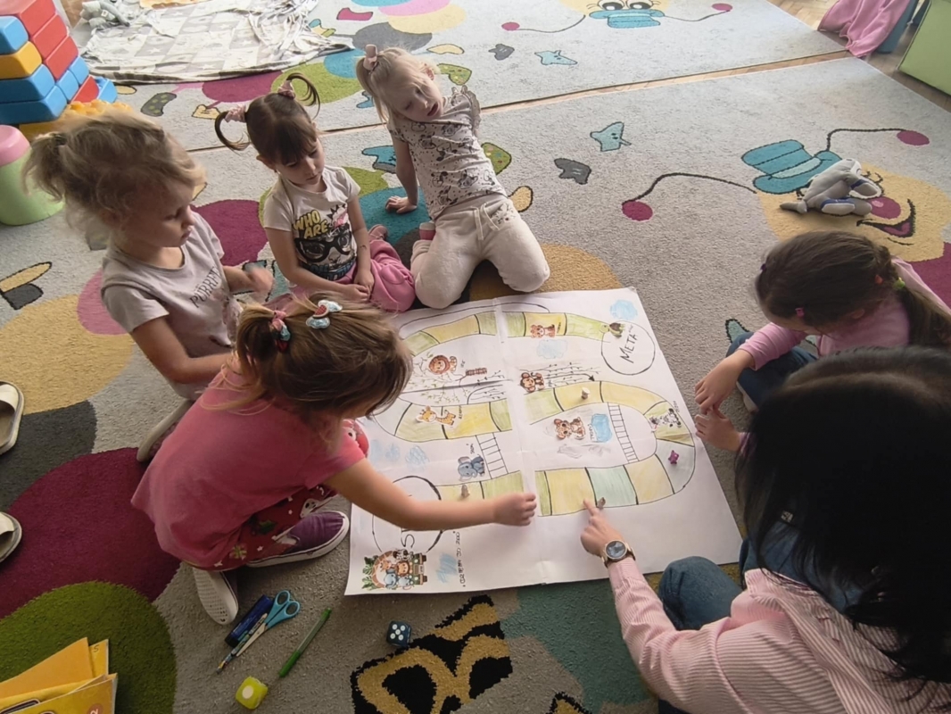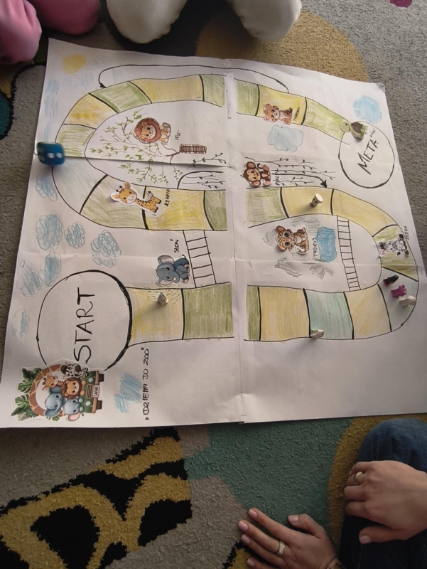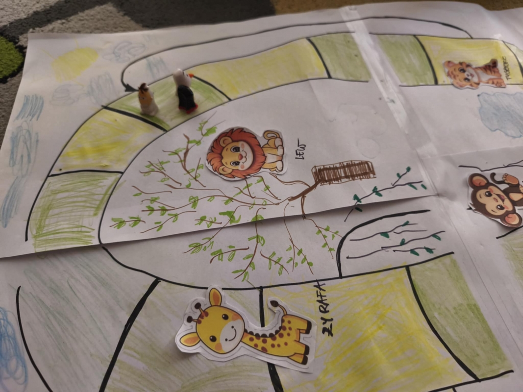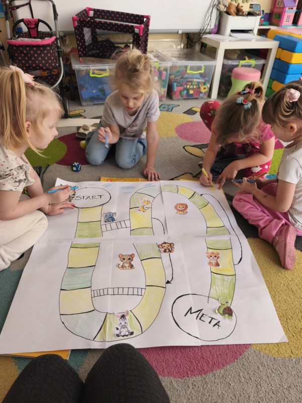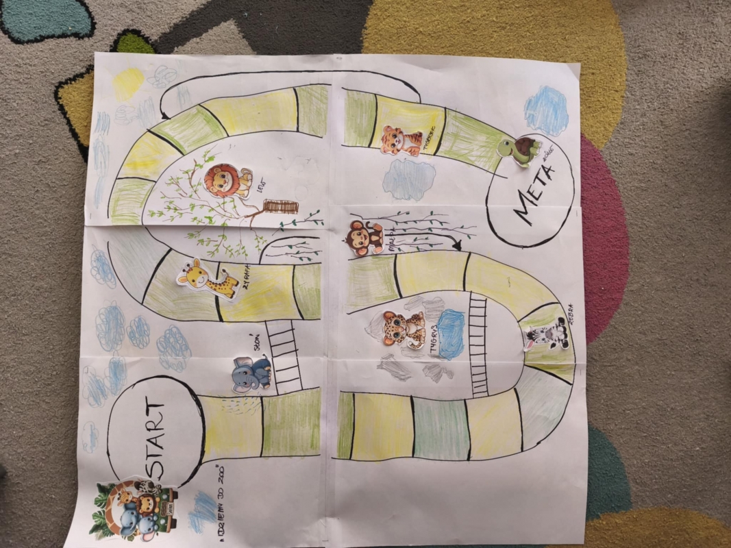 W dniu 20.02 grupa "Pajacyki" wraz z Ciocią Karoliną stworzyła grę planszową XXL pt. "Idziemy do zoo" dzieci same kolorowały pola planszy przyklejały zwierzątka, które można zobaczyć w zoo i dorysowywały elementy przyrody przedszkolaki wymyśliły własne zasady gry była to fantastyczna zabawa, dzięki której dzieci mogły nauczyć się czym są wygrana i przegrana.