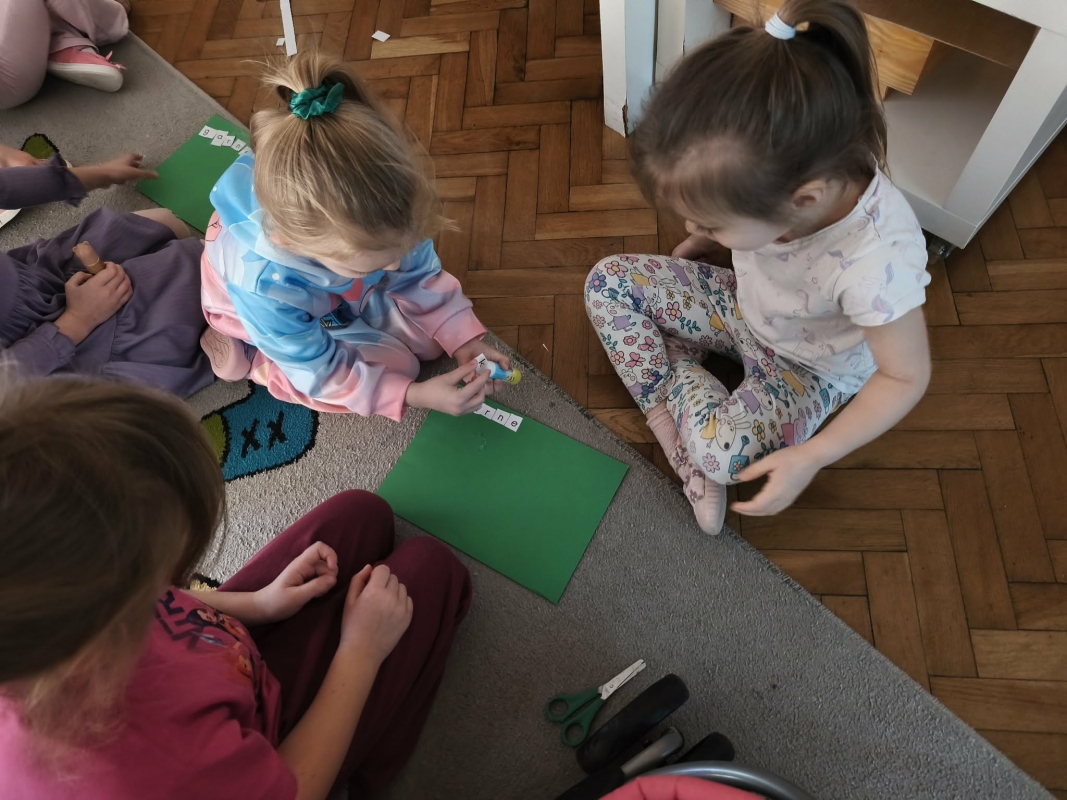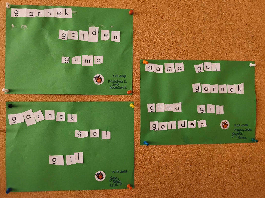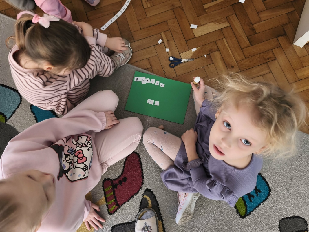 Zabawa dydaktyczna "Wąż" - układamy wyrazy. Dzieci uczestniczyły w ciekawej zabawie utrwalającej poznanie litery "g". Podczas zabawy dzieci ćwiczyły rozpoznawanie i utrwalanie litery "g". Ułożone wyrazy przyklejały na kolorowych kartkach. Zadanie sprawiło dzieciom dużo radości i zachęcało do aktywnego udziału w nauce poprzez zabawę.
